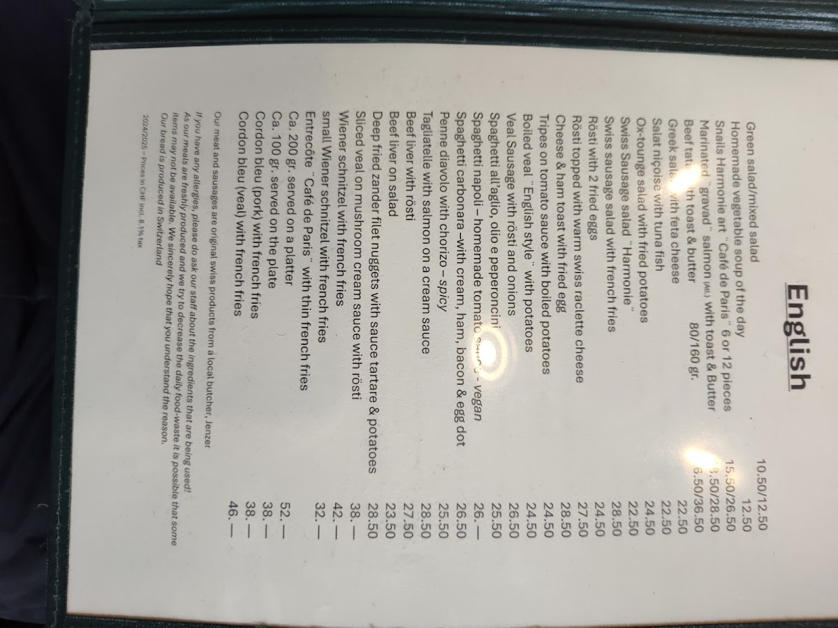 Introducing the Menu at Restauration zur Harmonie